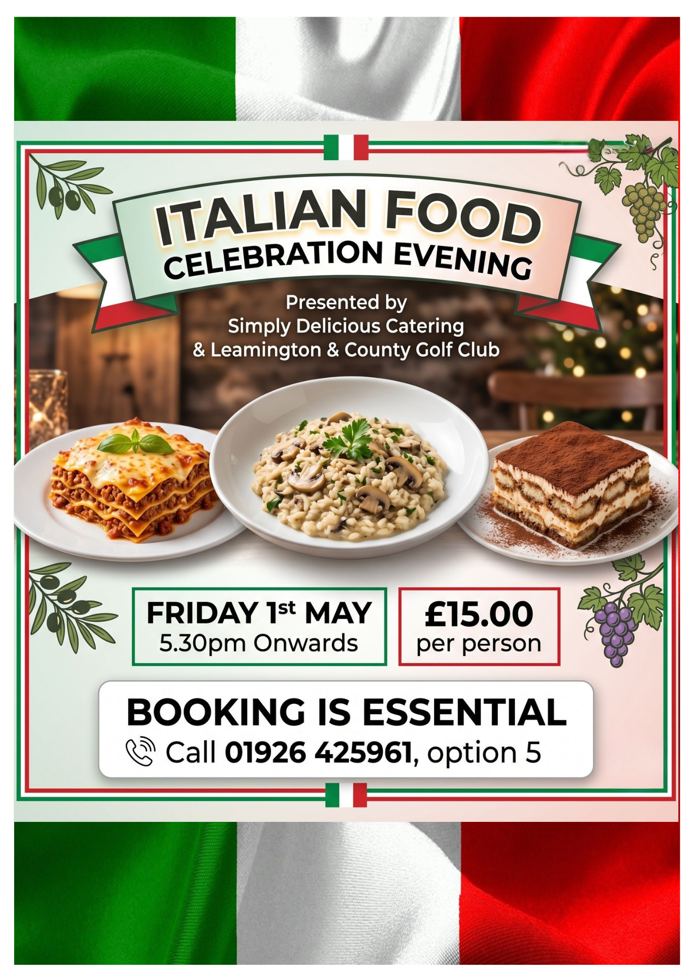 Lisa we will be providing an Italian Food Selection, including Beef Lasagna, Wild Mushroom Risotto and Tiramisu from 5.30pm